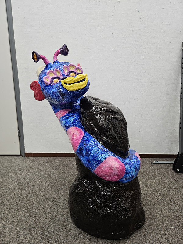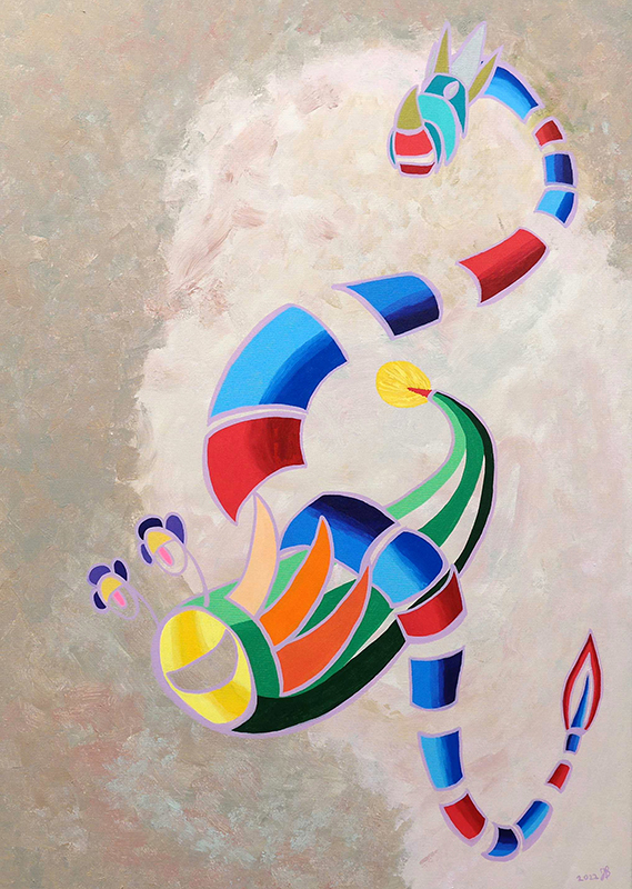 Wat mij fascineert is het intuïtieve proces om in abstracte vormen figuren te ontdekken. Ik schilder een dynamische abstracte achtergrond met acrylverf en vervolgens werk ik de gevonden figuren uit met acrylverf-markers. Naast de genoemde werkwijze experimenteer ik met de mogelijkheden om deze fantasierijke wereld in driedimensionale objecten en sculpturen te verwerken.