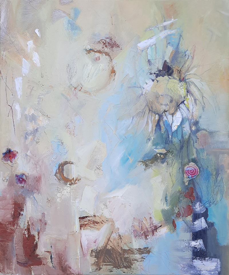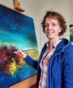Marleen van Lanen schildert in een abstracte stijl en werkt zowel met olie- als acrylverf. Haar oeuvre is veelzijdig, maar tegelijk direct herkenbaar. ‘Ik houd van de combinatie van zachte pasteltinten met heldere, uitgesproken kleuren. Vaak laat ik dikke klodders verf sterk contrasteren met gladdere delen van het schilderij.’