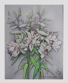 Ik ben 84 jaar en woonachtig in Alphen aan den Rijn. Ben goud en zilversmid geweest. Heb een groot zilveren kasteel gemaakt, wat te zien was op tv in het programma “Van onschatbare waarde”. Ik heb tekenlessen onder andere modeltekenen gehad in Leiden bij Ars Aemula.Ik maak schilderijen (aquarellen) ontleend aan de natuur, realistisch, soms wat decoratief, lettend op lijn, vorm, kleur, compositie en voeg daar soms nog wat sfeer aan toe. Ik geef hiermee een inkijkje in mijn beleving van de natuur.