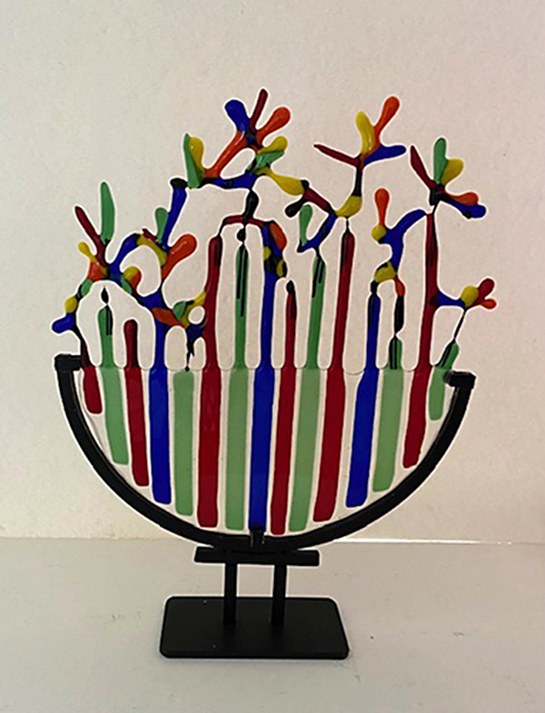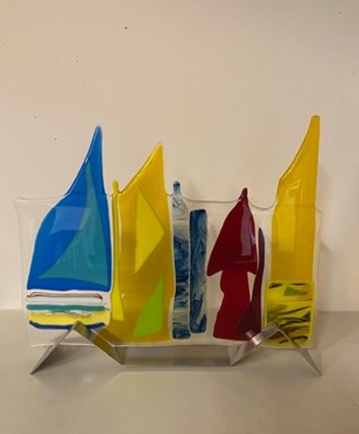 Achter het woord ‘Glasfusing’ verbergt zich een object in glas dat in een oven uit meerdere lagen gekleurd glas werd gevormd. Deze techniek, het samensmelten van verschillende glasdelen, is een al 2000 jaar-oude techniek. De laatste 30 jaar heeft de techniek belangrijke ontwikkelingen doorgemaakt. Er zijn veel verschillende glasproducten verkrijgbaar waarmee geëxperimenteerd kan worden. Kleurige glasplaten, zowel unie als meerkleurig, kleine fijngestoten glasdeeltjes in verschillende groottes, glasstaven in allerlei diktes en huig dunne glasplaatjes zijn verkrijgbaar. Deze glasdelen zijn met elkaar versmeltbaar, onder voorwaarde dat zij compatibel zijn. Dat wil zeggen alle glasdelen moeten dezelfde uitzettingscoëfficiënt (COE) hebben. De glasdelen worden in een speciale oven tot één glasplaat samengesmolten bij een temperatuur van 780ºC tot 850ºC. Dit proces duurt, afhankelijk van de dikte en doorsnede van het glas ca. 18 tot 22 uur. De aldus ontstane glasplaten kunnen nu verder vervormd worden.. Door het buigen en laten zinken in of op een vorm, meestal van keramiek, kunnen schalen en andere vormen gemaakt worden. Ook dit proces kan in meerdere stappen in de speciale glasoven worden uitgevoerd bij een temperatuur van 680ºC- 730ºC. Ieder object wordt met de hand samengesteld en is daardoor exclusief en een unicum. De objecten hebben hun eigen karakter dat bepaald wordt door kleur, licht en vorm.